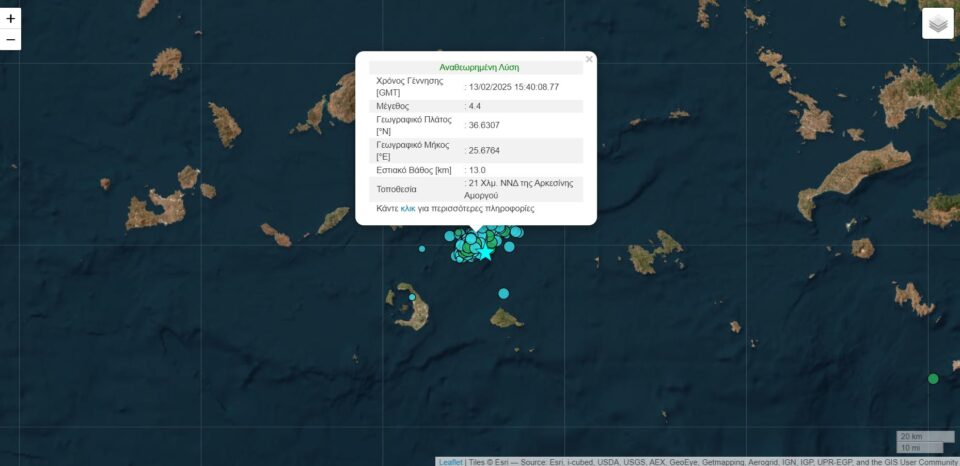Δύο σεισμοί των 4,4 Ρίχτερ στην Αμοργό από τις 17:40 ως τις 17:42