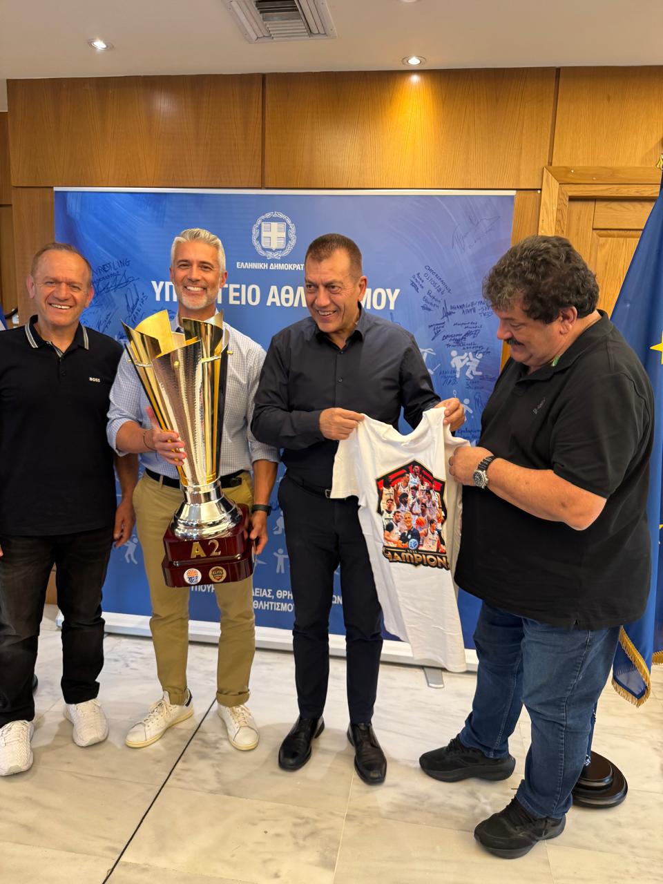 Ο αναπληρωτής Υπουργός Αθλητισμού κ. Βρούτσης συνεχάρη τη διοίκηση και το τεχνικό επιτελείο του ΑΟ Μυκόνου για την κατάκτηση του πρωταθλήματος της Elite League και την άνοδο της στην Stoiximan GBL.