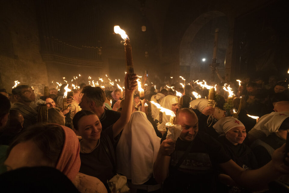 Όπως κάθε χρόνο, προσκυνητές απ’ όλο τον κόσμο συγκεντρώθηκαν μπροστά από το Ιερό κουβούκλιο στον Πανάγιο Τάφο για την σημαντική αυτή στιγμή της χριστιανικής πίστης.