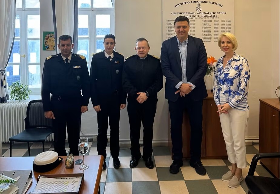 Στο Λιμεναρχείο Σύρου, για ενημέρωση από την τοπική διοίκηση σχετικά με τις ανάγκες του Σώματος ενόψει της θερινής περιόδου, συνοδευόμενος από τον Γενικό Γραμματέα Ναυτιλίας και Λιμένων κ. Ευάγγελο Κυριαζόπουλο και τον Αρχηγό του Λιμενικού Σώματος – Ελληνικής Ακτοφυλακής, Αντιναύαρχο Λ.Σ. κ. Τρύφωνα Κοντιζά.