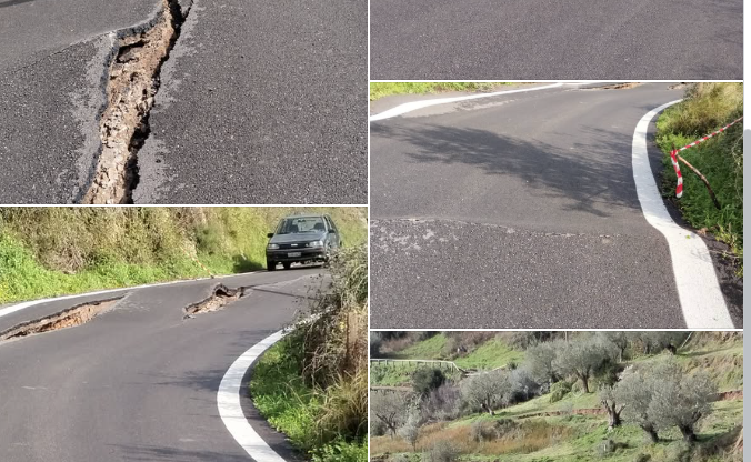 Όπως δείχνουν οι φωτογραφίες, το οδόστρωμα υπέστη ρήγμα σε δύο σημεία με αποτέλεσμα ο δρόμος να είναι απροσπέλαστος και οι 35 κάτοικοι του χωριού να παραμένουν αποκλεισμένοι.