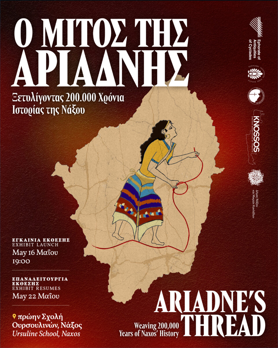 Την Παρασκευή 16 Μαΐου στις 19:00, στη Σχολή Ουρσουλινών θα φιλοξενηθεί η έκθεση του Αρχαιολογικού Προγράμματος Στελίδας Νάξου- Εφορείας Αρχαιοτήτων Κυκλάδων “Ο μίτος της Αριάδνης: Ξετυλίγοντας 200.000 χρόνια Ιστορίας της Νάξου”.