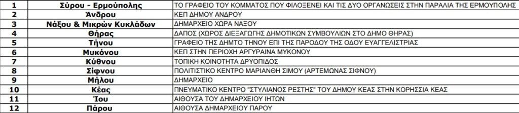 Αναλυτικότερα τα νησιά και τα σημεία στα οποία θα λειτουργήσουν εκλογικά κέντρα είναι τα ακόλουθα: