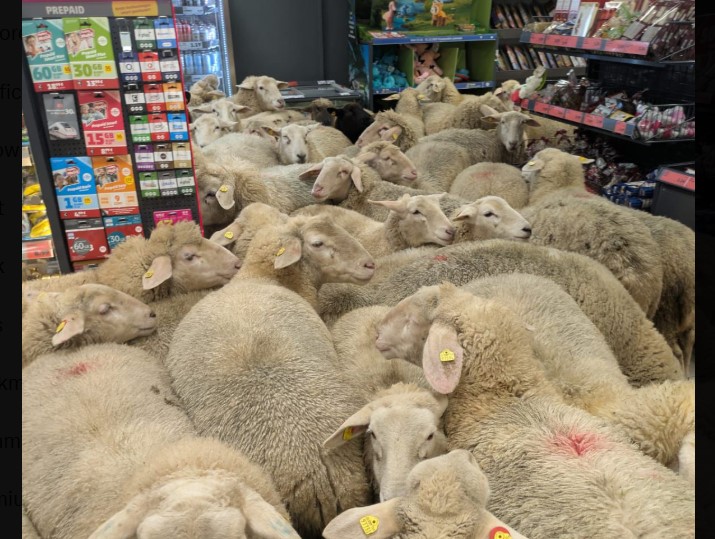 Τα πρόβατα τριγυρνούσαν ανάμεσα στα ράφια και τα ταμεία για περίπου 20 λεπτά, αφού είχαν απομακρυνθεί από το κοπάδι τους πριν μπουν στο κατάστημα τη Δευτέρα.