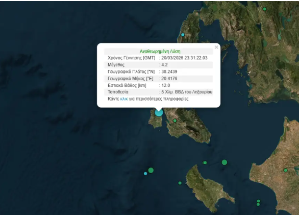Σεισμός μεγέθους 4.2 Ρίχτερ σημειώθηκε κοντά στο Ληξούρι στην Κεφαλονιά.