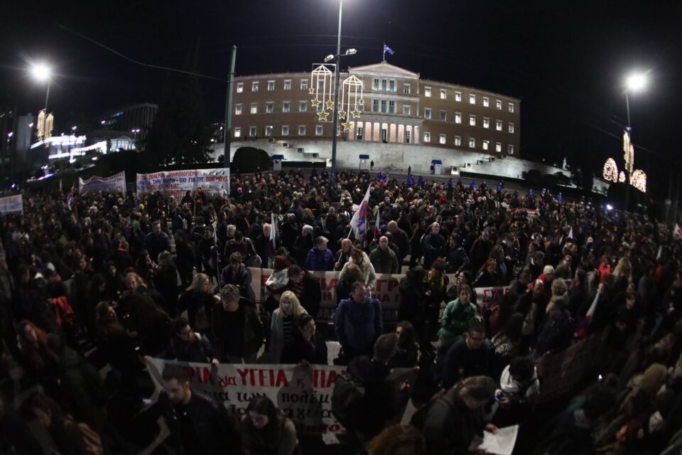 Συλλαλητήριο στο Σύνταγμα κατά του προϋπολογισμού πραγματοποίησαν εργαζομένοι, αυτοαπασχολούμενοι, νέοι και συνταξιούχοι.