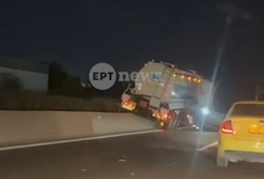 Όπως φαίνεται και στο βίντεο που εξασφάλισε το ΕΡΤnews, το βυτιοφόρο όχημα που ήταν φορτωμένο με πετρέλαιο για άγνωστους μέχρι στιγμής λόγους ξέφυγε της πορείας του και «καβάλησε» τα διαχωριστικά του δρόμου.