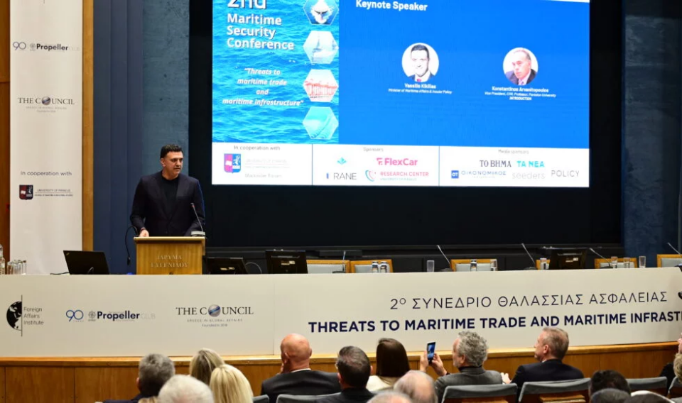 «Η Ναυτιλία είναι ο σημαντικότερος εξωστρεφής πυλώνας της Ελληνικής Οικονομίας. Είμαι πραγματικά ευγνώμων που ο Πρωθυπουργός Κυριάκος Μητσοτάκης μου εμπιστεύτηκε τη θέση του Υπουργού σε έναν τόσο σημαντικό τομέα» ανέφερε εισαγωγικά ο Υπουργός Ναυτιλίας και Νησιωτικής Πολιτικής, Βασίλης Κικίλιας, μιλώντας στο διεθνές συνέδριο 2nd International Maritime Security Conference, που πραγματοποιήθηκε στο Ίδρυμα Ευγενίδου.